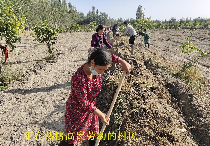 据了解,吐格曼贝希村核桃面积已达1922亩,但挂果面积少、产量低,核桃栽培管理技术不高,经济效益不佳的问题已成为制约核桃产业发展的一大瓶颈。今年以来,吐格曼贝希村访惠聚工作队调整核桃产业发展思路,在控制栽培规模,提高品质、增加效益上狠下功夫,取得较好的效果。在大力抓好春、夏生长季节的土、水、肥、病虫害防治等管理措施同时,并把核桃秋季管理作为重点来抓,因此第一书记张成斌和村委会主任阿布都热合曼指导果农进行核桃开沟、除草、深翻、科学施肥,要求种植户施一次越冬基肥,为来年丰产奠定基础。
