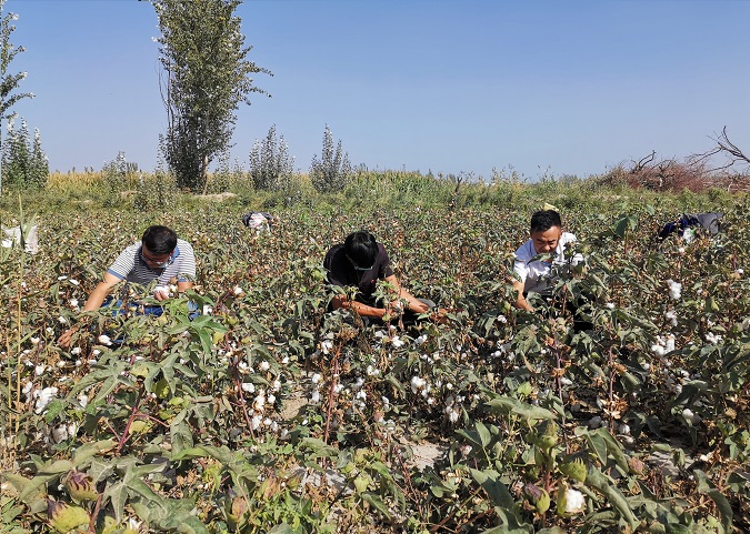 “今年我承包了400亩地种棉花,因为地还未能平整没能种植机采面,所以需要大量的人力,工作队和村委会为了帮助我按时完成拾花并完成土地平整工作,安排富余劳动力帮我捡棉花,太感谢他们了”村民艾买提·阿合尼牙孜说道。