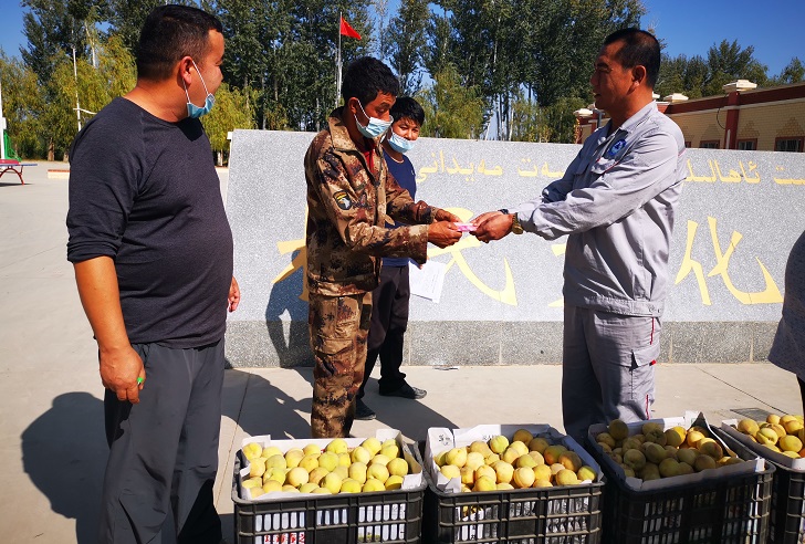阿克苏宏晟达燃气有限责任公司董事长侯风平说:“这次购买的鸡和桃子都是生长在农村的绿色无污染产品,比市场上卖的更健康。公司本来就打算国庆节和中秋节前慰问一线员工,所以当工作队联系到我们时,我们也很高兴就前来采购了。”