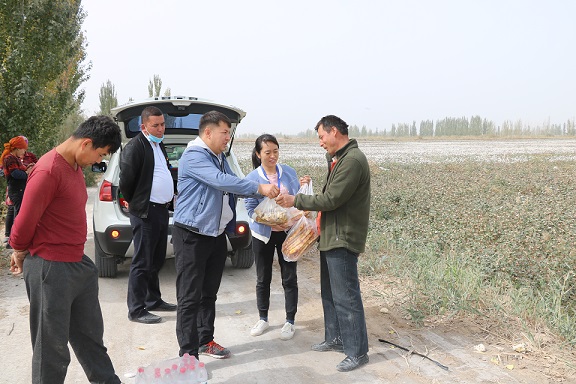 清风网讯(新疆农业大学:侯伟伟 艾克帕尔·热杰甫)十月金秋,正值佳节,本是阖家欢聚,共度国庆的日子,托万克拜什艾日克村44名村民仍在为脱贫攻坚贡献一丝微力,将自己的勤劳与汗水洒在广阔无垠的棉花地里,新疆农业大学驻托万克拜什艾日克村“访惠聚”工作队于10月2日为他们送去双节的祝福,在棉花地里话真情。