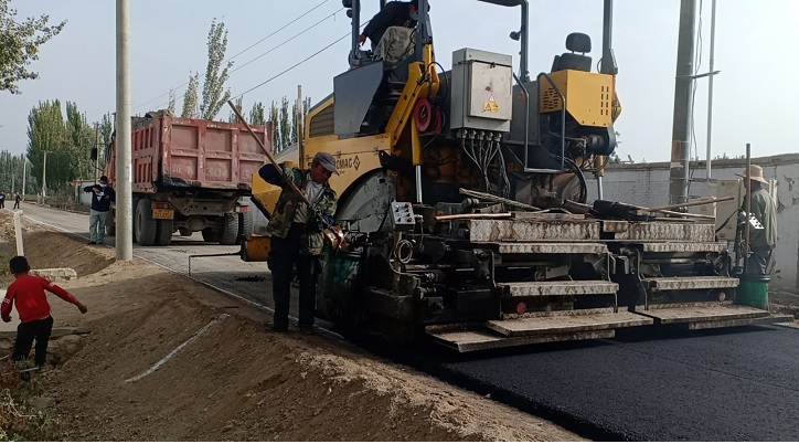 连日来,在托万克塔勒克村3小组居民点,机器轰鸣,沥青拌合料摊铺工作加紧施工,驻村工作队、村“两委”紧盯施工进度,了解施工现场存在的各项问题,并及时协调解决。