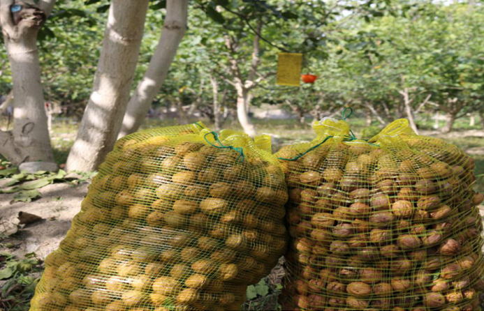 往年,喀孜干村的核桃挂果不多,即使挂果,也因为管理不到位,病虫害严重,导致落果现象严重,产量较底。为此拜城县自然资源局“访惠聚”驻村工作队免费为农户提供技术指导及相关果树管理工作措施。在村委会的监督指导下,农户按照专业的种植方法对核桃园按时间节点有序进行修剪拉枝、清园除白、施肥、病虫害防治等管护,今年的核桃产量提高了不少,品质也比去年好。