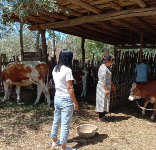 结束了一周工作的热依汉古丽.奥斯曼带着一些水果去了她的贫困结亲户米尔瓦奶姆.铁木尔家,米尔瓦奶姆.铁木尔一见到她就赶紧拉着她的手说:"你终于来了啊,等了你好几天了,快来看看新下的牛犊子。"看着新下的牛犊子,米尔瓦奶姆.铁木尔一脸感激又说到:“我现在有这样的好生活可全都是党和国家还有你的功劳啊,新时代国家脱贫攻坚的政策好,你帮我申请那么多适合我的帮扶帮扶项目,你看我现在享受的庭院改造、牛育肥项目、大棚蔬菜、“五个一”项目,就是这一个又一个的扶贫项目才让我过上了现在的好日子,还有买这些牛和保险的时候钱不够,你还帮忙垫付一些呢!”热依汗古丽忙摆手说“我们可是好亲戚、好朋友,阿达西有麻烦的时候互相帮助不是应该的嘛?再说买牛和保险的时候,我也没有帮你垫付多少!”米尔瓦奶姆.铁木尔说到"对,阿达西就要相互帮助。"