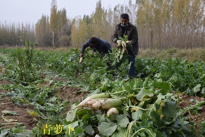 今年以来,在驻村工作队的走访摸排中发现,一些农户收完小麦后,因为气候原因,部分土地上种植的秋播玉米,往往还未成熟,冬季己来到。种植的玉米只能充作饲料喂牛、养羊,勤劳的村民群众在土地种植上得不到最大利益。为使有限的土地发挥利益最大化,帮助农户增收致富,7月底,在第一书记马德义与村两委班子的决策部署下,联合动员村民群众将收割完的250余亩土地进行统一规划,统一分配,统一管理,种植了白菜、青萝卜、恰玛古、胡萝卜等冬季蔬菜,根据计划一方面生长的蔬菜由工作队帮助联系统一销售,一方面确保村民群众家庭中物资供应,节约开支。