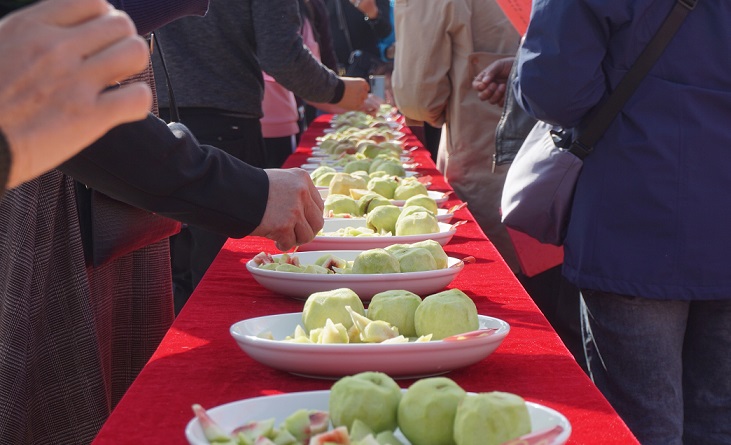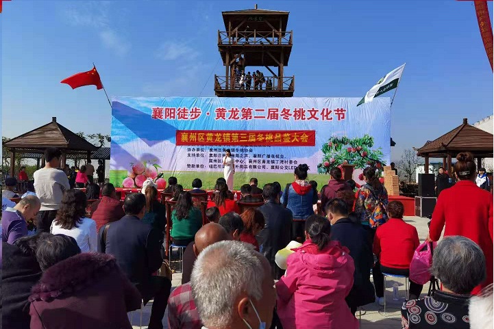 节庆助力。11月8日,黄龙镇党委、政府以冬桃为媒,由襄阳市户外运动协会主办了襄阳徒步黄龙第二届冬桃文化节暨第三届冬桃品鉴会。来自黄龙镇近30家冬桃种植户,带上自家种植的冬桃前来参加品鉴大赛。比赛现场,工作人员摆满提前准备好的1—40号冬桃,接受评委和游客们的品尝、鉴定。丁湾村五组村民陈光合种植的22号冬桃,因品质好、味道甜荣获冬桃品鉴大赛“冬桃王”称号,获得一等奖。评委们还为一、二、三等奖冬桃种植户发放奖金和荣誉证书。冬桃文化节,吸引近千名游客前来采摘、品尝、户外休闲,为桃农们搭建了技术经验交流、合作共赢的平台。