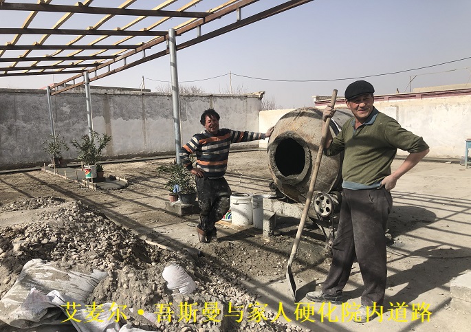 11月11日下午,工作队走进拜克力·玉素甫家中,颜色鲜明、规划合理的花墙以及干净整齐分明的葡萄架给拜克力·玉素甫家的农家院增添了许多光彩。在村子的一角,工作队遇见了正在和家人一起打扫整理庭院的艾尔肯·努尔与正在硬化庭院道路的艾麦尔·吾斯曼,谈起村里的的变化,艾麦尔·吾斯曼他感激地说:“如今政策好了,村里的道路都修成了水泥路,家家户户的环境卫生也改善了,我也要抓紧赶上大家的步伐,紧紧跟着党的脚步。”