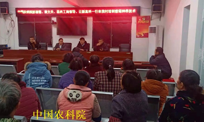 清风网讯( 新邵县迎光乡人民政府:江涛 彭育忠)12月3日,中国农业科学院彭源德研究员、中国农业科学院龚文兵博士、新邵县科技和工业信息化局孙卫国领导和云新高科农业开发有限公司相关负责人一行来到迎光乡顺水村开展香菇种养技术培训,顺水村30余名贫困劳动力参加了培训。
