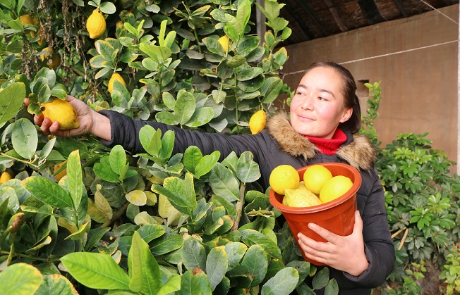 近日,新疆库车市乌尊镇扶贫产业项目基地种植的200多亩柠檬进入丰收季,果农忙着采摘新鲜的柠檬。近年来,库车市结合市场需求、调整农产品种植种类,让农民在引进的扶贫项目基地里就业,多方面促进农民增收。