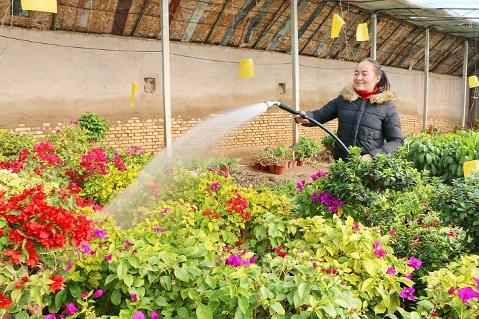 近日,新疆库车市乌尊村低收入农户在花卉大棚劳作。近些年来,该镇引导当地农民调整林业产业结构,依据市场需求引进特色花卉苗木繁育种植,助力农民脱贫增收,带动了当地农村剩余劳动力的就地转化。