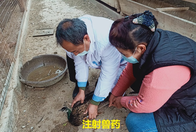 12月25日,县农业农村驻丰收片区克依木塔拉村“访惠聚”工作队副队长阿布拉江·米吉提来到牧民吐逊江·阿力木的养殖场,现场为其指导孔雀养殖的注意事项,并为生病的孔雀注射兽药。