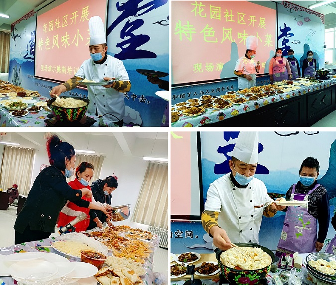 清风网讯(沙雅县沙雅镇花园社区 :李萍) 12月26日,新疆沙雅县沙雅镇花园社区“特色风味小菜”美食制作活动在花园社区四楼举行,活动邀请了辖区内专业的厨师教居民如何制作风味美食。活动吸引约30名社区居民参与,赢得居民的阵阵称赞。