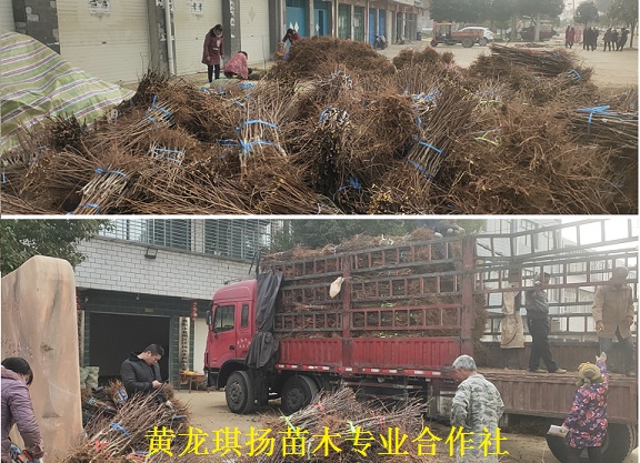 清风网讯(黄龙镇人民政府:杨涛)12月29日,天寒地冻。革命苏区襄阳黄龙镇琪扬苗木种植专业合作社门前,却是一番热火朝天的忙碌景象,10多名工人正在往一辆加长大货车上装载嫁接的桃苗、李子苗、桔苗等苗木。