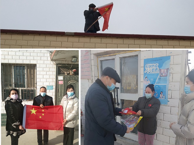 活动中,工作队成员将崭新的国旗与新年祝福一一送至结亲户家中,并帮助行动不便的结亲户悬挂国旗。