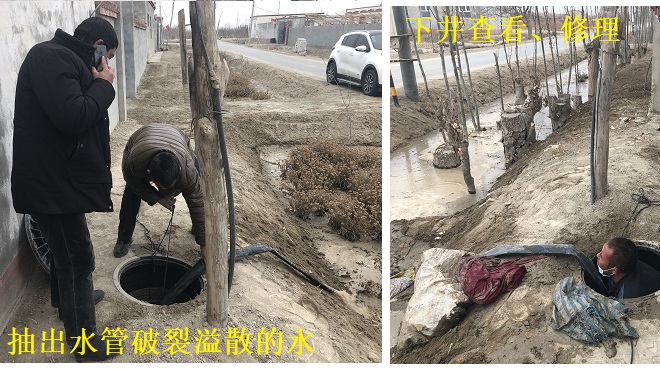事后,驻村工作队联系专业的修自来水管道的工作人员, 经过工作队和下沉工作人员的共同努力,下井、换接口,井口修复,近2个小时,损坏的自来水管道顺利修复,以最快的速度让村民正常用上了自来水。