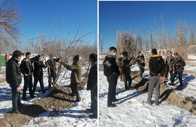 在开展培训工作当中,村委会副主任吐尼亚孜·吐木尔带领各小队的专业修剪人员开展了实地操作,同时对本村的人居环境整治工作开展了逐户检查,同时,对每家每户农家院内以及房前屋后果树进行全部修剪并做了防冻措施。随着后续工作的开展,将对本村杏子林也做好防冻措施,并对周边环境组织清扫。极大的改善依力克其村的村容村貌,共建一个干净整洁焕然一新的新村庄。