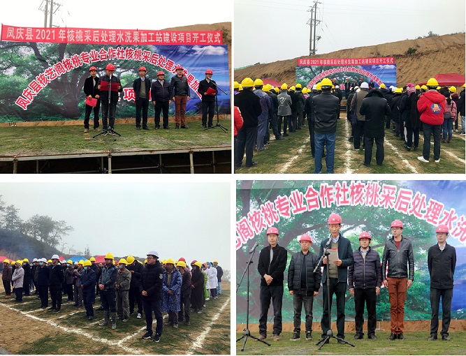 在开工仪式上,县人民政府副县长陈正华作了发言讲话并宣布项目开工。陈正华强调,采取以水洗为主的核桃初加工标准化体系建设是实现核桃产业从基地到产品的标准化发展的关键环节,各部门要提高认识,加强协作,统筹推进,确保项目效益最大化。