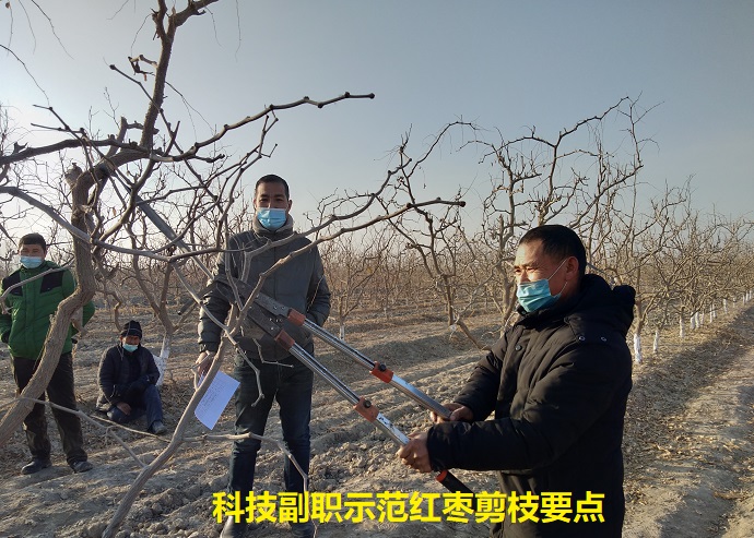 “大家看,这种比较杂乱的枣树枝子,都要及时剪掉,这样才能保证枣树主枝的营养,红枣的产量和质量才能同步保证。”培训现场,合作社技术人员与村科技副职王天秋两人轮换着边讲边剪,用通俗易懂语言向群众讲解红枣科技修剪、病虫害防治、红枣施肥等三个方面知识,和群众交流互动,现场气氛热烈。