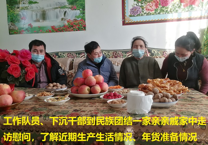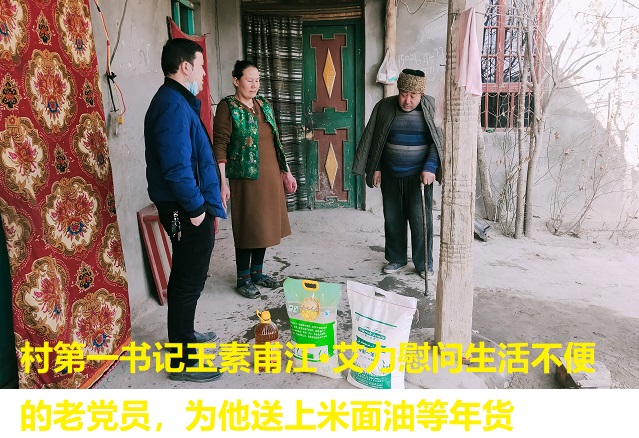 “村里部分群众的家人因为响应政府的号召,选择了就地过年,为了让他们过上一个有‘温度’的春节,我们拿出了2500元的‘访惠聚’经费,为他们购置了米面油等年货,把党和政府的温暖送到群众心间。”第一书记玉素甫江·艾力说。