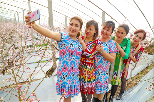 清风网库车讯 (库车市委组织部:吴乐)阳春三月,走进库车市比西巴格乡其乃巴格村温室大棚内,100余亩桃花已陆续开放,正是市民和游客前往踏青赏花的好去处,这些小小的花朵,在让游客饱了眼福的同时,也让当地村民的腰包鼓了起来。