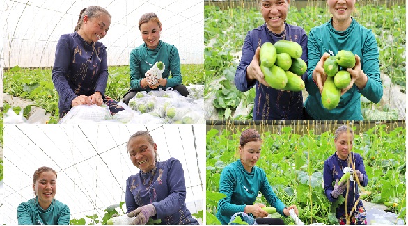 )3月30日,新疆库车市阿拉哈格镇吐格曼拜什村妇女在蔬菜合作社基地采摘葫芦瓜。近年来,该镇坚持以党组织引领、以党员能人带头、以合作社为基点,吸纳农户参与特色产业发展,走出了一条党建引领合作社发展升级、农民抱团增收致富的新路子。