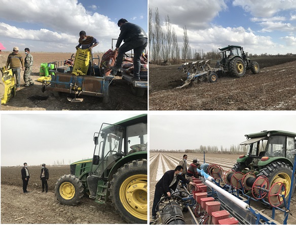 人勤春来早,春耕正当时。目前正是灌溉、整地、播种的最好时节,村委会组织工作队、村两委干部、技术人员深入田间地头,查看墒情、整地情况,监督播种、肥料,指导机械化全程作业。田间地头GPRS导航播种拖拉机、大马力耕犁机、棉花打包机、残膜回收机等现代化农业机械一应俱全,实现了精准耕种、精量播种,深受广大农民的青睐。尔肯江·阿合尼亚孜说:“现在农民各地春耕、春种、打药、采收基本不用人工,省时、省力,种地比以前轻松多了。有人说我们种植棉花存在“强迫劳动”,看看我们这些现代化的农业机械,还需要人工强迫劳动吗?我们家种植棉花110亩,从犁地、播种、施肥、灌溉、采收等全程机械化,节省了大量人力、物力、财力。去年,我们家棉花收入10余万元,还不算其它收入,家庭年收入一年比一年高、生活一年比一年好,感谢党的好政策”。