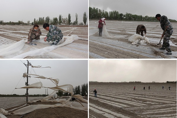清风网讯(通讯员:董泰锐)4月22日,地处新疆南部的第一师阿拉尔市七团部分棉花、辣椒等农作物遭受强风沙尘灾害,部分职工身份地三分之一的地膜被强风掀飞,三分之二辣椒苗被大风吹死,受灾严重。