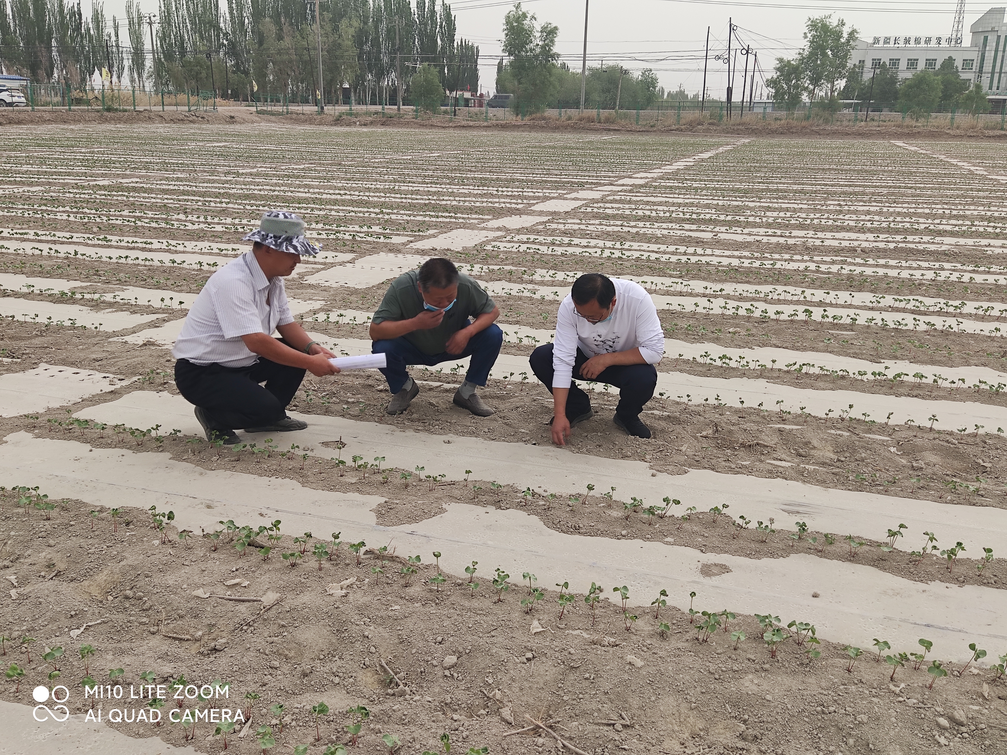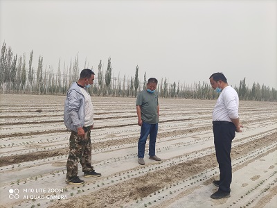 2021年5月8日,种子管理站技术人员就棉花新品种展示田出苗情况进行了调查,目前,19个品种出苗率达到95%以上,棉苗长势良好。种子管理站党支部书记孙吉贵同志就棉花当前管理要点提出了两点要求:一是抓紧时间放苗,有效避免棉苗腐烂。二是尽快滴水,促使棉苗生长。确保展示田棉苗整齐,为地区高品质棉花品种展示提供良好的观摩现场。