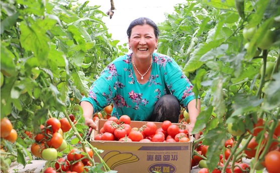 5月22日,新疆库车市牙哈镇晨光村西红柿种植户喜获丰收。近年来,库车市坚持以党组织引领、以党员能人带头、以合作社为基点,引导村民发展大棚蔬菜、百香果、黑木耳等农业特色产业,壮大村集体经济,实现增收致富。