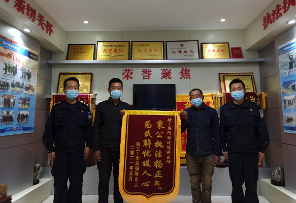 清风网讯 (阿克苏边境管理支队:孙浩然) 自“我为群众办实事”实践活动开展以来,新疆阿克苏边境管理支队英阿特边境派出所深入走访了解群众实际困难,真心实意为群众办实事。5月25日,李某代表工友们将一面“为民解忧暖人心,秉公执法扬正气”的锦旗送到派出所以表感谢之情。