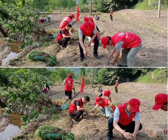 这些不知疲惫的“红马甲”,是张家畈镇财政所的党员干部在给驻点帮扶村黄市坳栽种野菊花。
