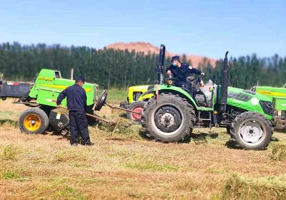 民警因长时间和牧民相处,对各家的人员情况都比较了解,知道冬储草是牲畜严寒冬季唯一的草料,每到打草季节都主动走访了解牧民们的实际情况,帮助有困难的牧民完成冬储草料。