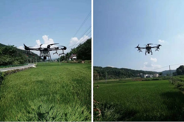 清风网讯(通讯员:王国平 李永存)眼下正是水稻生长重要时期,为预防病虫害,近日,湖北英山县方家咀乡的水稻田里,一架小型无人机来回往返于水稻田上空,为水稻进行飞防作业。据悉,这是英山县农业农村局、方家咀乡农技服务中心利用无人机对水稻二化螟、稻飞虱、稻曲病、纹枯病、稻瘟病等病虫害进行防治的情景。