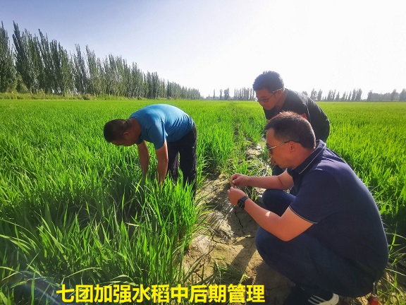 清风网讯(通讯员:董泰锐、董洁)眼下正值水稻生长黄金时节,地处塔克拉玛干沙漠北缘的新疆兵团第一师七团抢抓水稻关键期管理,确保水稻丰产丰收。连日来,团镇农业技术人员、连队“两委”深入田间地头,指导承包职工加强精细化管理,开展病虫害防治工作,促进苗情提档升级。