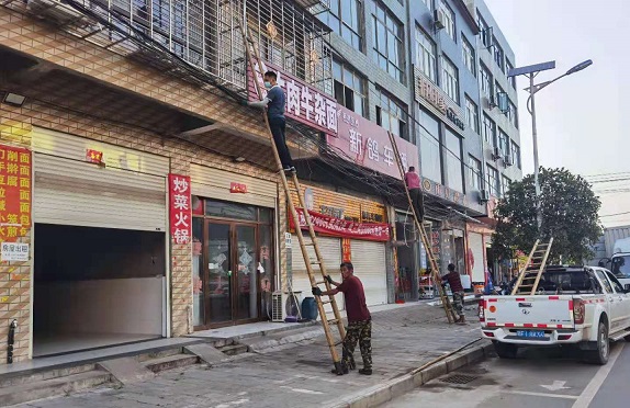 二是责任明确细分工。对于“空中顽疾”整治项目实行分工制。弱电入地开挖工程由集镇整治公司负责;从西门十字街到中心十字街长385米的各类弱电电线,由电信、移动、联通、广电等四家公司负责自行拆除;襄洪路集镇东西2公里、双黄路南北1.4公里弱电线路捆绑整治项目由电信公司负责施工。