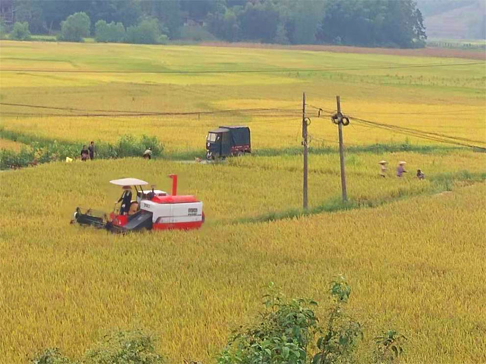 在朝阳村村民刘继武的稻田里,不到20分钟,一片稻谷就被收割、脱粒、卷入脱粒仓完毕。他说,水稻收割机不仅让他省时又省力,更为他节省了一大笔费用。而且稻秆直接粉碎还田,以免焚烧造成环境的污染。以前请人一亩田花费近400元,现在机械收割只需花费90元左右”。在如今,湾头桥镇机械收割已成为主流,农事自动化操作,不仅全面提升了收割效率,为老弱家庭们解决了收割难题,也为该镇乡村振兴注入了科技力量。