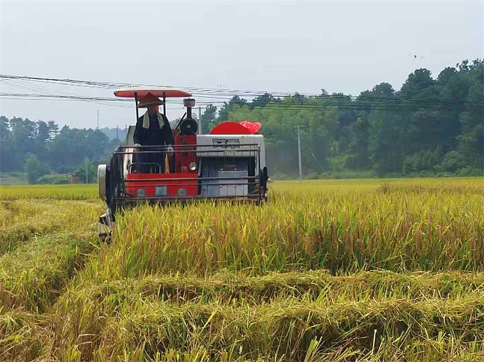 据悉,湾头桥镇双季稻万亩示范片位于六家、泻油、石覃等8个村,30亩以上种粮大户112户,流转土地面积18715.4亩,全镇水田面积56433.72亩,双季稻面积4.2万亩;玉米套种大豆500亩,制种2860亩,其中获友农机专业合作社制种830亩;中稻产量每亩平均700公斤左右,双季稻二季平均亩产600公斤左右,产量较去年有略微提升。每个业主承包,采用规模化种植,机械化收割的方式,有效保证了收割效果和全市粮食产量。
