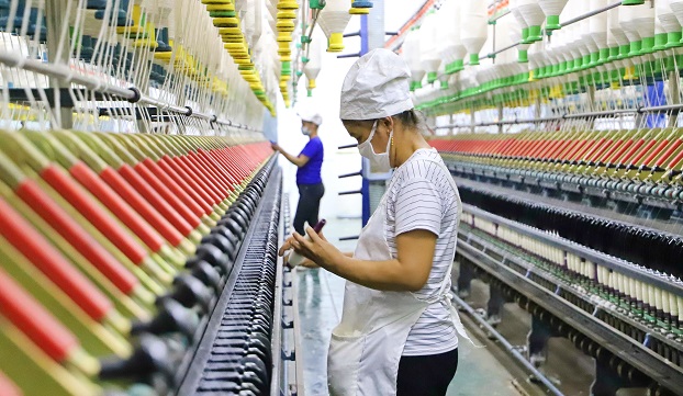 9月26日,新疆库车市东城街道石化新村社区鼎力纺织科技有限公司车间内,工人正在加紧赶制外贸订单。近年来,库车市通过加大留守人员培训,建立“乡村小微工厂”等方式,积极拓宽当地村民就业渠道,将就业岗位送到村民家门口,让群众实现顾家、增收两不误。
