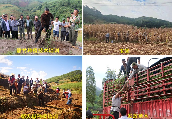 为保证玉米、烤烟丰收后土地“不空档”,使群众实现持续增收,该乡主动对接联系龙头企业,争取农业订单,在全乡范围内发展朝天椒、甜竹、豇豆等种植。为调动群众发展产业的积极性和主动性,乡、村党员干部逐村逐户与群众面对面座谈交流,围绕市场优势、种植技术、销售渠道等方面向农户作详细说明;工作人员根据农户发展意向统计出名单及需发展亩数。同时,先后邀请马台乡魏启珍甜竹笋农业专业合作社、景谷升行农业开发有限公司、通海县圆满农业科技有限公司对甜竹、豇豆、朝天椒种植开展技术培训,既帮助农户解决了种植过程中的技术难题,也搭建了一个交流信息、共享资源的平台,帮助贫困户树立了脱贫致富的信心,从“根源”上打消了对发展“新产业”的顾虑。通过不断努力,全乡200余户农户发展起了“新产业”,据了解,此次共发展种植甜竹200亩、朝天椒150亩、豇豆150亩,预计亩产值均可达到6000至8000元以上,每亩净收入可达5000元以上,户均实现增收12500元以上。