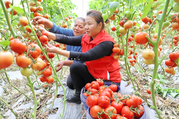 11月16日,新疆库车市乌恰镇党员干部帮助村民采摘西红柿。近年来,该镇以发展产业作为推动乡村振兴的抓手,引进先进农业设施和技术,建成标准化的大棚蔬菜基地,实行统一管理,统一出售,发展订单农业,蔬菜主要销往上海、湖南等全国各地。