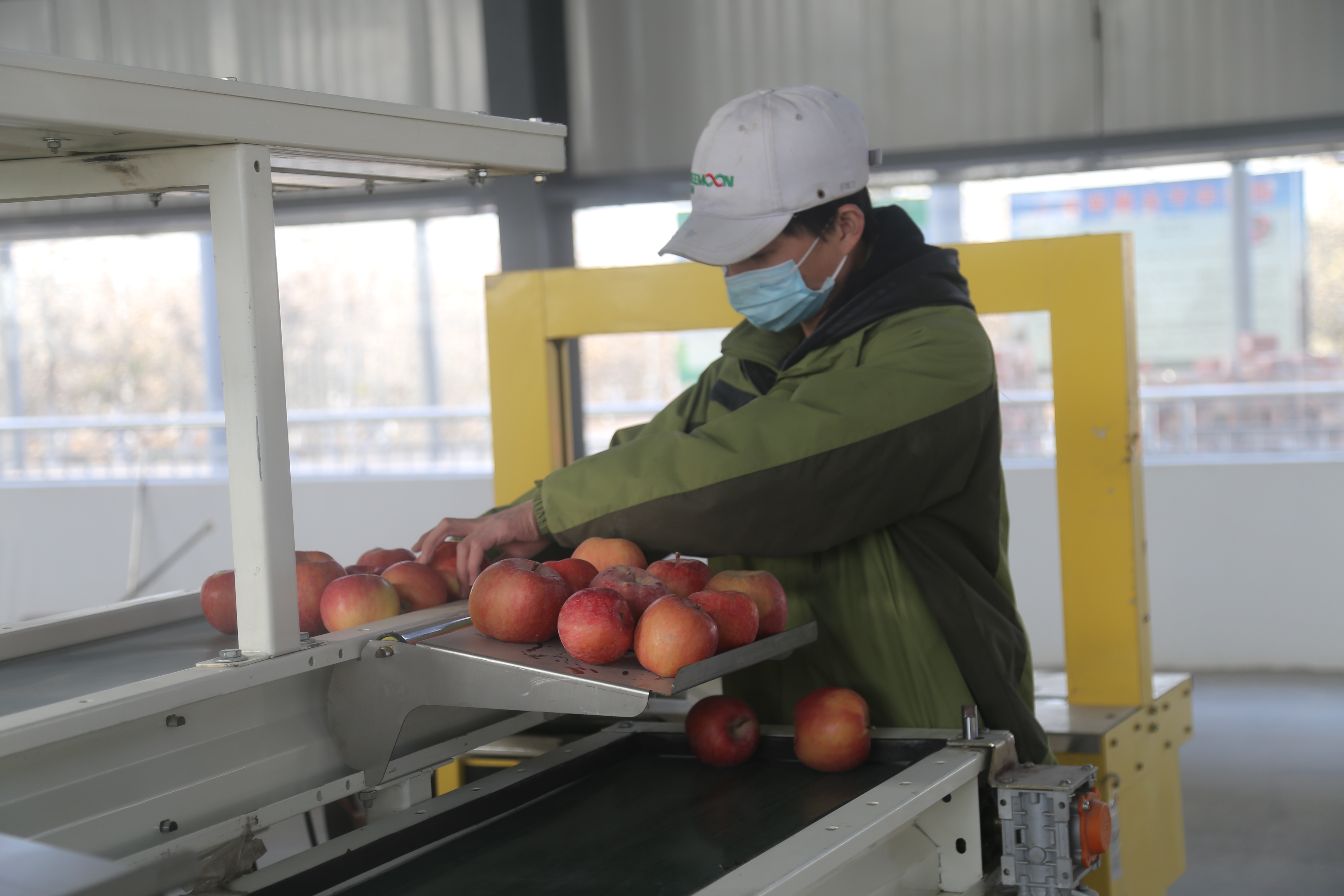 记者来到鑫连精选车间内看到,所有的工人正在为12月6号开业作最后的准备,一些工人正在清理地面,专业技术人员正在调试分拣设备,一个个大小不一苹果通过称重区,来到分拣区间而后分到各个果品操作间内,不大一会工夫,一箱苹果分拣完成。