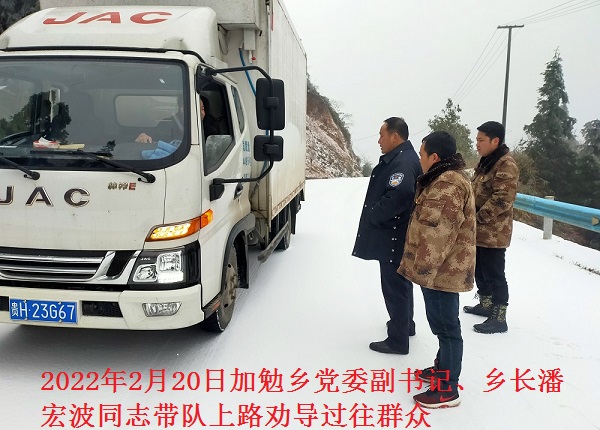 一是严格执行交通管制。自降雪以来,该乡启动一级应急预案,强化调度,发挥各村党支部作用,号召广大党员干部上路排查路况,对不能通行路段,设立警示牌、安排人员轮班值守或广播告知群众,严格执行管制。