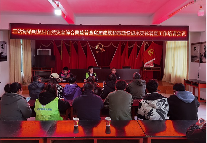 高度重视,精心筹备。组织召开房屋自然灾害风险普查培训会,要求各村干部、党员积极参与,严格按照规范完成调查工作。会议还邀请了第三方技术人员进行现场业务培训,要求对房屋建筑面积、结构类型、户主信息等基本情况进行摸底调查,建立和完善房屋安全风险信息数据库,确保工作开展有计划、有档案、有监管。