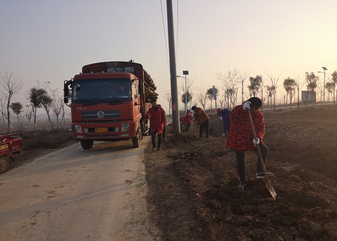 2月26日,阳光明媚。在革命老区襄阳黄龙镇美丽乡村建设示范村—方岗村的八、九组通组公路两边挖窝的、扶树的、浇水的......村民们个个忙得不亦乐乎,把春天装点的更加美丽。