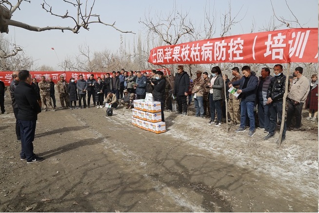 会议强调,做好今年农业生产各项工作,确保粮食安全和重要农产品有效供给,责任重大、任务艰巨,要坚决打好春季农业生产关键一仗。一是开展好春灌工作,节约用水,保质保量完成春灌任务。二是精准落实“一团一品”,注重种植栽培技术指导,服务好职工。三是关注粮食作物面积,学好“中央一号”文件,提高政治意识,因地制宜做好小品种作物推广工作。四是积极开展 “干播湿出”栽培技术研究与示范,为职工群众解决实际问题,提升品质。五是进行科学合理地间作套种,做好茴香套种引导工作,确保职工增收。六是做好果树枝枯病害防控工作,为此,本次现场会还邀请了塔里木大学和相关企业的专业技术人员就目前果树枝枯病发生危害情况、发病症状、危害特点、传播途径、疫情处置、综合防控阻截技术等作了详细讲授。七是做好安全生产工作,尤其关注农机安全,用火安全,一氧化碳中毒防治等问题 。八是做好经营地发包和招商引资工作。