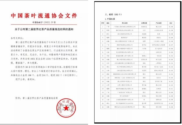 日前,在中国茶叶流通协会微信公众号上发布着《关于公布第二届世界红茶产品质量推选结果的通知》这样一则信息,公示着各个红茶样品的获奖荣誉。