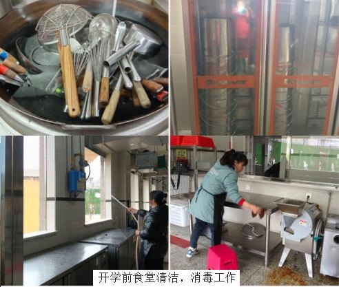 幼儿返园之前,食堂工作人员全面清扫食堂后厨、保鲜库等各个区域,对餐具进行浸泡、清洗、消毒,保证师生良好的就餐环境。同时姚柳园长和郑刚园长细致检查食堂储备的米、油、调料、肉、菜等食材,为师生“舌尖上的安全”保驾护航。