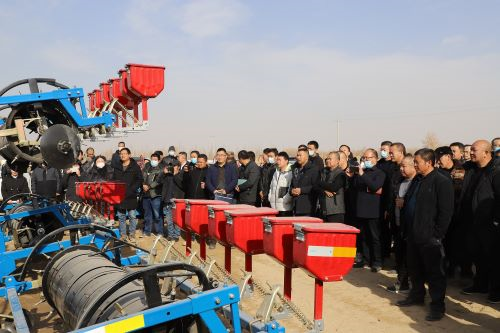 为更好地促进棉花“干播湿出”工作的开展与落实,2月6日下午,新疆生产建设兵团第一师阿拉尔市农业农村局在九团六连组织召开2023年棉花“干播湿出”现场推进会。师市农业农村局局长谢龙,副局长袁劲松,九团党委常委、副团长杨玉萍出席会议。师市各团农发中心负责人、工作人员、农机工人及棉花种植户等300余人参加会议。