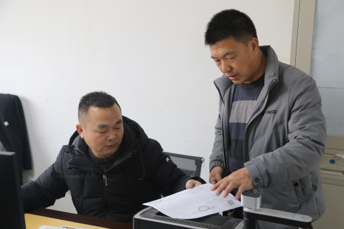 2月6日,在七团农业发展服务中心办公室,来自七团八连的职工吴胜利正在申请办理购买新疆阿拉尔金准机械制造有限公司出品的“干播湿出”播种机补贴手续。