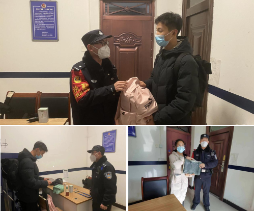 2月10日,子长站派出所民警梁鹏在执勤巡逻中发现一个遗留在候车室的粉色背包,,内有苹果平板1部及其他个人物品,民警立即通过车站广播、闸机口寻找失主,经多方努力,找到失主,确认无误后,民警将背包交还失主,受到失主诚挚感谢。2月13日,子长站派出所执勤民警杨舒凯在巡逻中接一名高姓旅客求助称,随身携带的手提电脑包丢失,包内装惠普电脑一台及一些其他个人物品,接到求助后,民警杨舒凯立即前往候车室查看,未找到电脑包,随后民警协调车站调取旅客进站时的监控视频,发现旅客在进站时不慎致包掉入安检仪侧方后滑落底部,之后民警在安检仪底将包找到,确认无误后返还失主,受到旅客诚挚感谢。(子长站派出所)