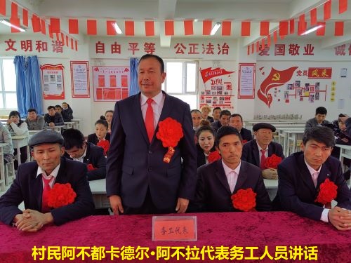 2月15日下午,温宿县吐木秀克镇兰干村与新疆黄羊滩生态林业开发有限公司举行“稳岗就业+临时就业”整村劳务输出协议签订仪式,首批20位务工村民现场签订劳动合同。